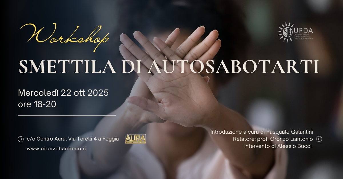 Due ore in cui potrai comprendere come interrompere davvero le dinamiche che ti sabotano e tornare a dirigere la tua vita.