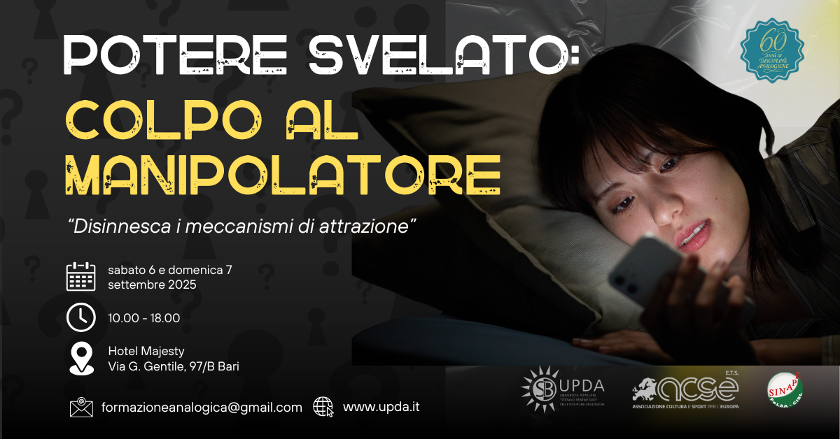 Due giornate per smascherare i meccanismi invisibili del manipolatore e riprendere il tuo potere personale.